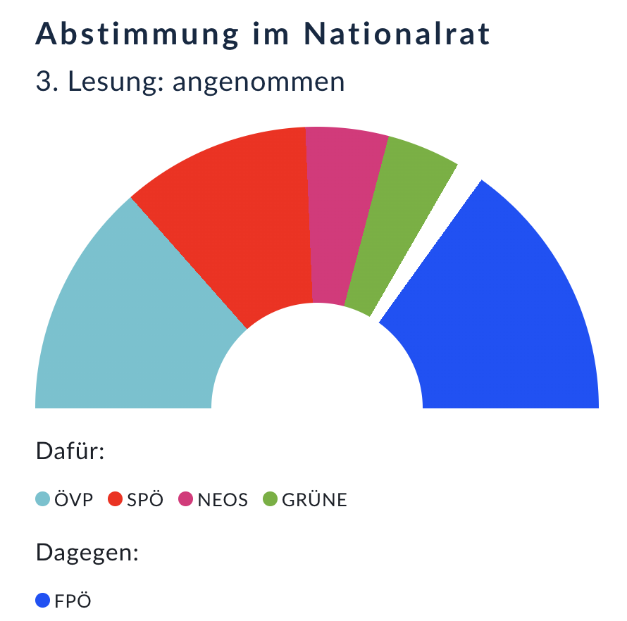 Die Reform des Mietrechts wurde mit den Stimmen von ÖVP, SPÖ, NEOS und den GRÜNEN beschlossen, während die FPÖ dagegen stimmte. Das neue Gesetz trat am 1. Januar 2026 in Kraft.